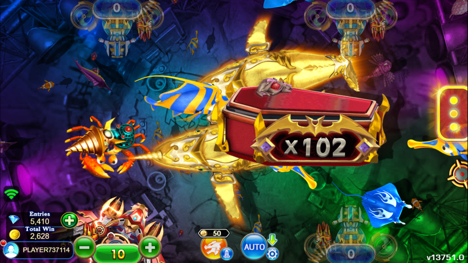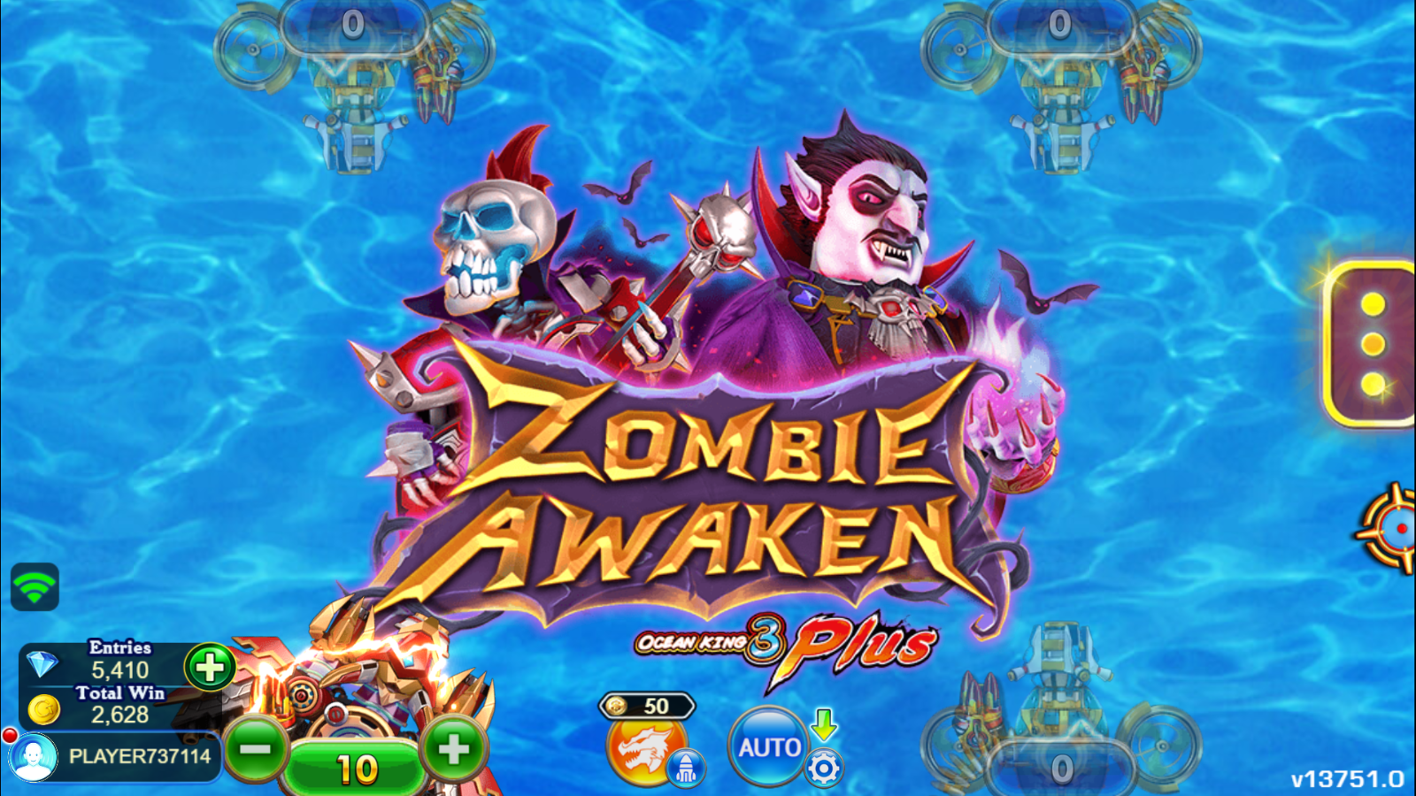 Come to our Rock N Roll Party and celebrate in our nightmare! Make your choice of the Speed, Lock On, Tiger Power, or Dragon Power Cannons and join the fun. Take down the Vampire King to score the bonus associated, which triggers The Vampire's Revenge where you spin a reel to decide your Bonus Multiplier! Try Zombie Awaken today, only with Lucky Palace Games.