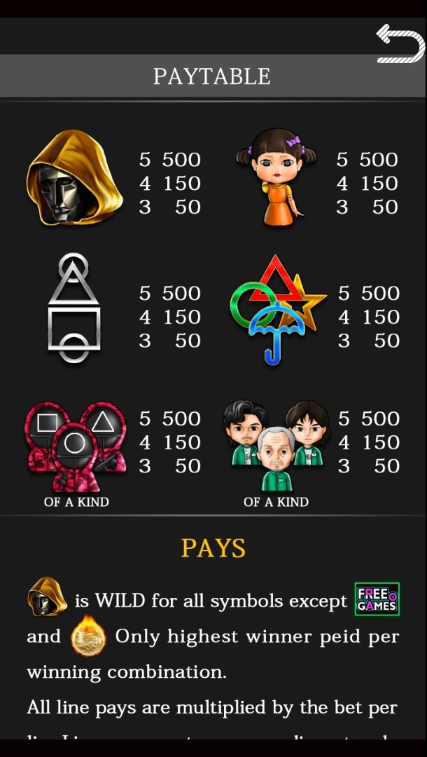 Will you be the one to survive our newest game, Squid Games! With so many ways to win, this game is a smash! Align all the gold masked men for a huge win, collect 4+ fireballs or match 3 FREE GAMES for your chance at a high paced bonus game! Will you give it to the guards and win the jackpot? Time to thrive.